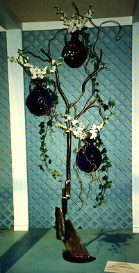 The glass vessels for this piece were given to me by interior designer Dorota Konopata; at the time she suggested I create an exhibit for the open class competition at Canada Blooms 1999. The sculpture received excellent reviews and a prize as well.
